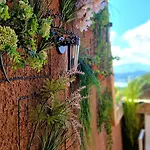 Lägenheten har möjligheter för självhushållning, som ett utrustat kök, matplats och utomhusmatplats där gästerna kan laga sina måltider.